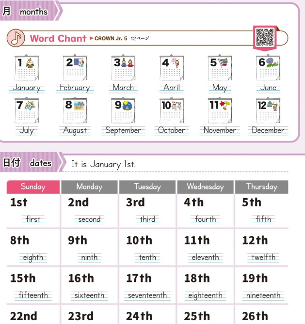 小5の最初に勉強する月・日付・曜日なども書けて当たり前・・・。でも実は小学校ではそこまでしっかり単語を書く事を教えてくれないという悪循環。