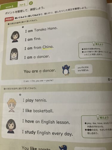 ほぼ変わらない・・・。しかも小5から中1でつまずく「be動詞(is)」「一般動詞(like)」が普通に出てますね。