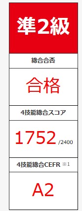 やっと、やっと準2級のスパイラルから抜け出せました。長かった……。