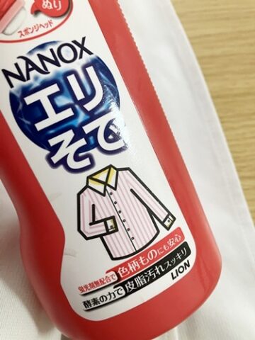 ワイドハイターPROはスプレータイプで、ナノックスエリそでは直接塗るタイプなのですが、男子の襟汚れには絶対に直接塗るタイプの方が落ちる!!!!!!