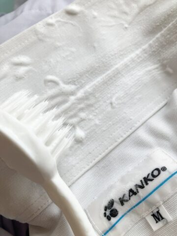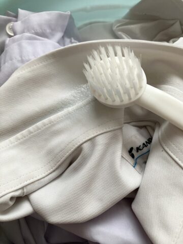 ③朝洗濯機を回す時にワイシャツを取りだし中性洗剤つけてブラシでゴシゴシっ。
