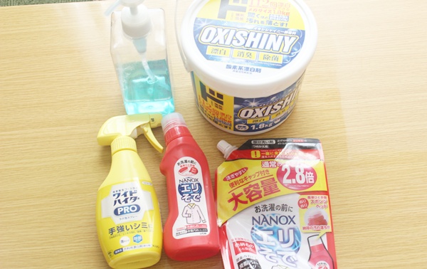 襟汚れ洗剤の代表は「ワイドハイターPRO(画像左下)」と「NANOXエリそで(画像真ん中)」が有名だと思いますが、どちらも使って私が使いまくってるのは