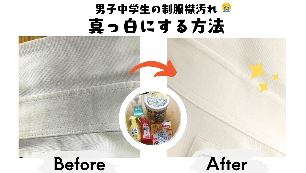 中学生男子の制服の襟汚れ、本当に頑固ですよね。 毎日洗っているはずなのに、気づけば真っ黒。