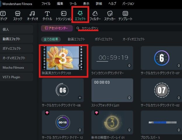 - テンプレート前・・・エフェクト(映画風カウントダウン)