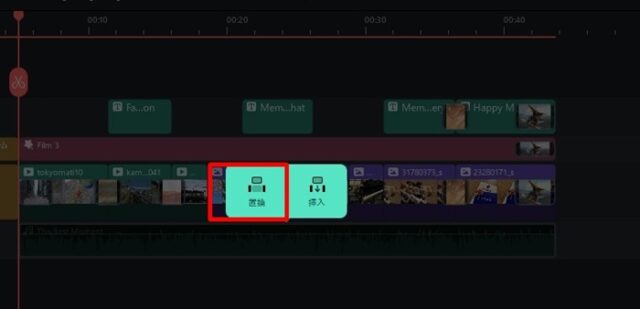 「置換」「挿入」の文字が出るので「置換」を選べば音楽の入れ替えが出来ます。