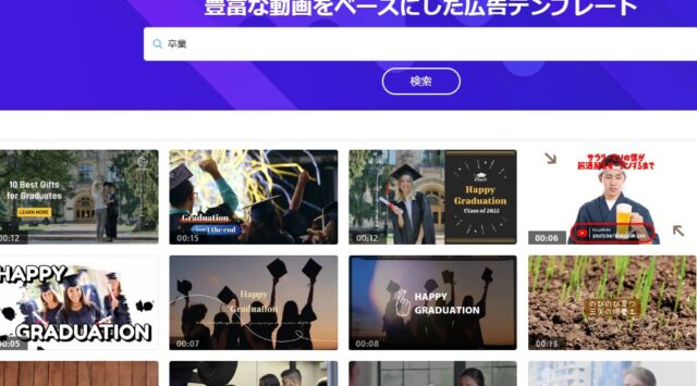 「卒業」で検索した結果。海外の卒業に使うようなテンプレが多いイメージです。