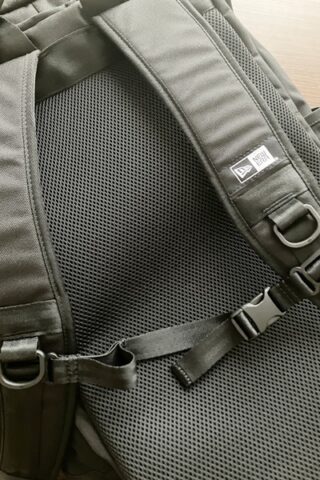 通常のスクエア型は横に広がりがちですが、ニューエラのボックスパック(特に大容量の46L)は、縦に長いデザインになっているから。