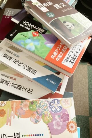 これらの教科書類を辞書の横に...