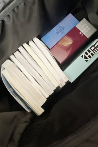辞書とA5教科書の奥に3冊十分入ります。まだまだ余裕ですが、肩壊れますね(笑)