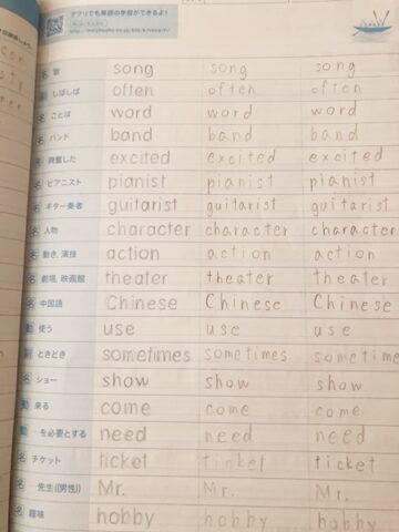 もちろん中学生の単語は書くことも大事。分からない単語は何度も書いて覚えるようにしました。