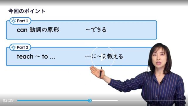 スタサプは1つの動画が5分程度にまとめられています。例えば中1の英語「助動詞can」は3分18秒