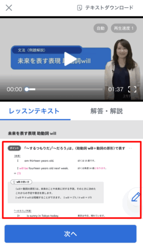スタサプの「本文対策」動画なら、その単元で覚えるべき重要文法をピンポイントで教えてくれます。