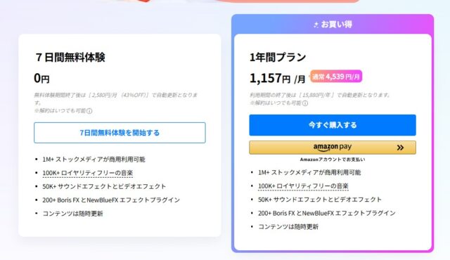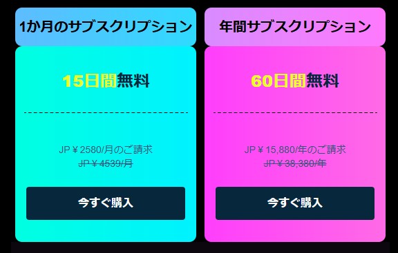 セール中の場合は1年間のサブスクプランが安くなることもあったり(下記の画像は1年間のサブスクプランが安くなっています)、