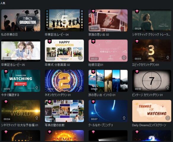有料テンプレートにはアニメーションやエフェクトが凝っていたり、音楽付きだったりと、より“プロっぽい仕上がり”になるものも多いです。