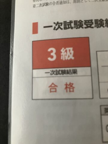 はじめての二次試験、3級の二次試験の合格率はとても高いと聞くので大丈夫だとは思いましたがやっぱりドキドキしますよね。