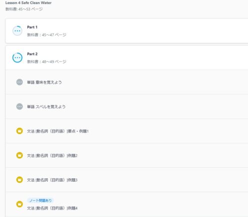 例えば公立中の娘の場合「ニュークラウンのLesson4の文法を勉強したい」と言った時にパパっと見られるのがスタサプ。