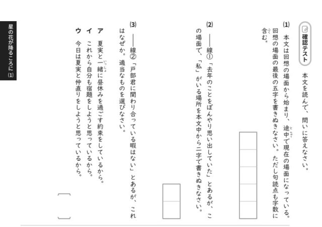 中間で時間がなく正答率が低かった「星の花が降るころに」に関しては親子で振り返り、理解してから次の単元へ。