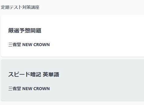 例えば英語の場合、スタサプ中学講座を見てまずは「スピード暗記英単語」をチェック。娘校の場合は一応「教科書Lesson〇まで」という範囲指定があるので、指定された単元の英単語問題をササっと復習します。