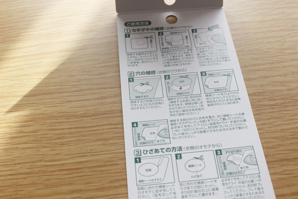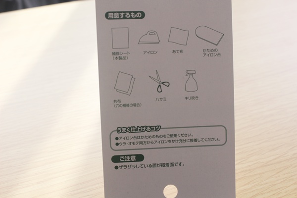 補修シートの説明書を読むと、共布のないバージョンもあったのでイチかバチかで1⃣の方法を取ることに。
