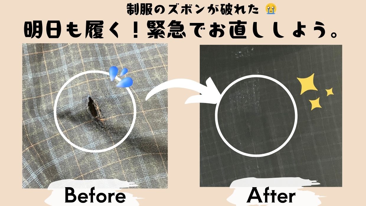 お直しに出すと数千円~1万円?!制服ズボン破れたときどうする?