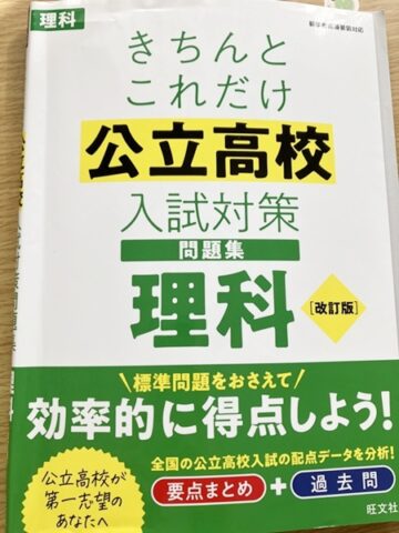 国数英は独自問題ですが理科・社会は県立高校と同じ問題なので、問題集として「きちんとこれだけ」シリーズの理科と社会を購入しました。