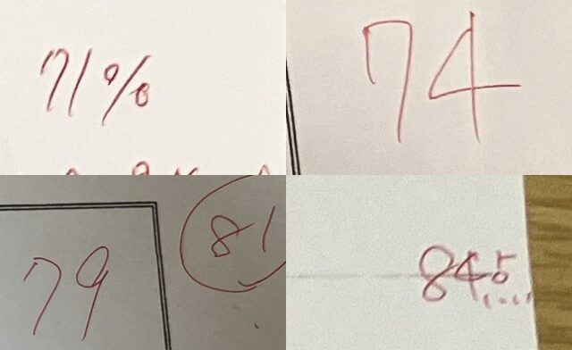 答えを見てるんじゃないか疑惑もありますが(笑)市の実力テストは公開されていませんし、答えは私しか持ってない、自宅で過去問を解く時も私が20年分をランダムに出しリビングで解いているので答えを覚えたり見たりするのは不可能...。