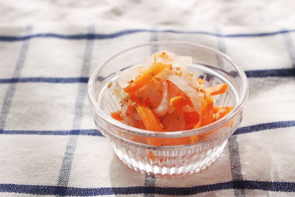 紅白なますレシピ お弁当の彩りや箸休めにぴったりな「紅白なます」。今回はカンタン酢を使って、手軽に作れるレシピに仕上げました。子どもが食べやすいように、ほんの少し砂糖をプラスして甘めに調整。スライサーを使えば下ごしらえもあっという間!白ごまをふれば、見た目も風味もぐっと引き立ちます。冷蔵庫でしっかり味をなじませて、お弁当にもすぐ使える一品です♪ 材料 大根...1/8本 にんじん...2~3㎝ 塩...少々 簡単酢...大さじ3 砂糖...小さじ1/2 つくり方 紅白なますが入った献立 おすすめレシピ