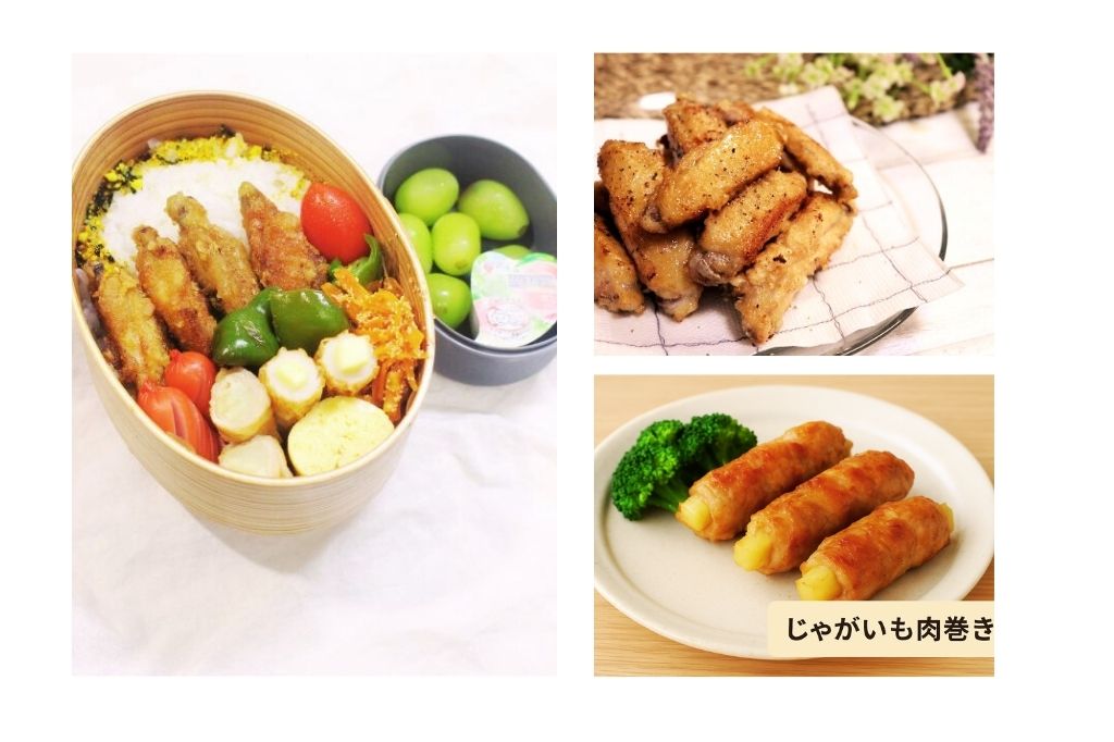 手羽先からあげレシピ 手羽先を包丁で切って手羽中ハーフにすれば、骨付きでも食べやすくてお弁当にぴったり。クレイジーソルトで下味をつけて、片栗粉をまぶしてカラッと揚げるだけ。シンプルなのに香りと旨みがしっかり感じられる、我が家の定番からあげです。 材料 手羽先…4本(ハーフにカット) クレイジーソルト…小さじ1 片栗粉…適量 揚げ油…適量 つくり方 手羽先からあげが入った献立 その他お肉献立 おすすめレシピ