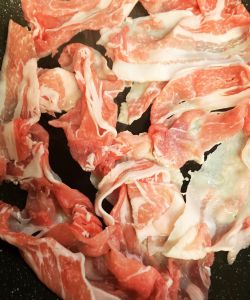 • フライパンに軽くサラダ油を敷き豚肉を入れて炒める