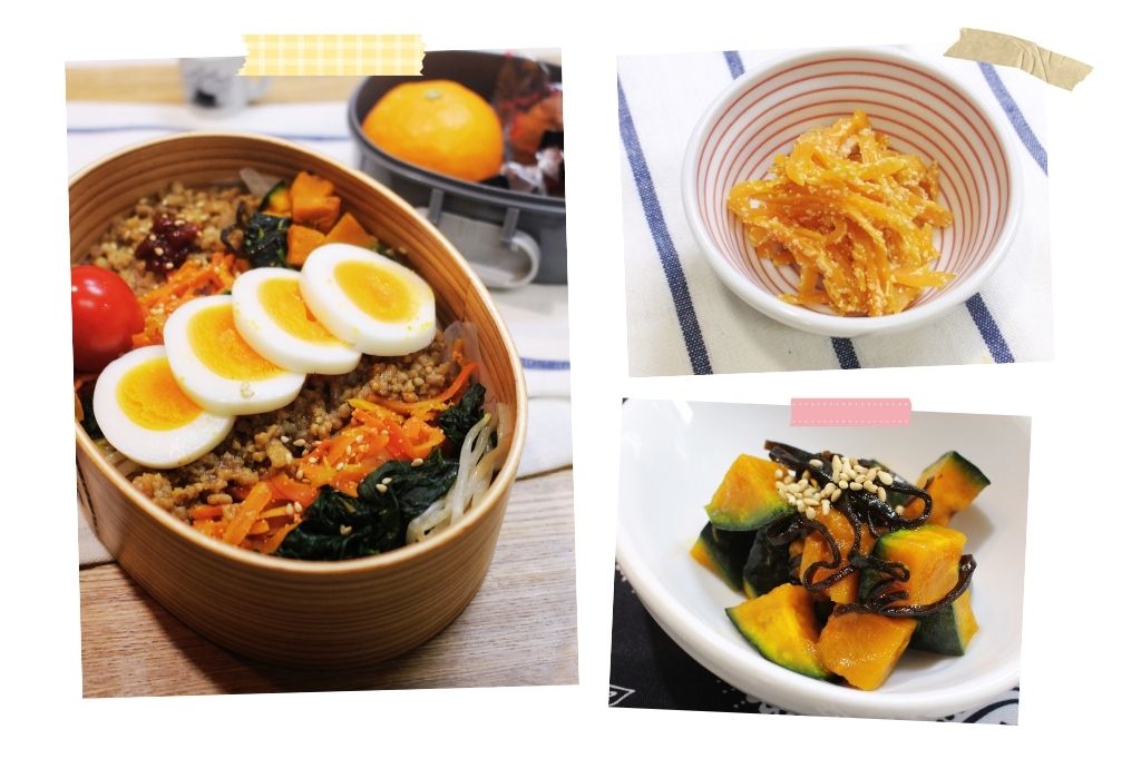 作り置きおかずを上手に活用すれば、忙しい朝でも手軽に完成するのが ビビンバ弁当。ひき肉やナムル、卵をのせるだけで彩りも栄養もバランスよくそろいます。さらに副菜にはかぼちゃ塩昆布和えやにんじんたらこなど、甘さ・辛さ・香ばしさが楽しめるラインナップ。食欲をそそる満足感たっぷりのお弁当に仕上がりました。 ビビンバ かぼちゃ塩昆布 にんじんたらこ 献立一覧 (メイン)ビビンバ(豚ひき肉) (副菜①)かぼちゃ塩昆布和え (副菜②)にんじんたらこ (副菜③)もやしナムル (副菜④)ほうれん草おひたし ゆで卵 ブロッコ ...