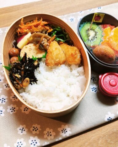 「今日はちょっと楽したい…」そんな日に便利なのが市販のエビフライ。存在感抜群・揚げるだけで立派なメインになるので、時間がない朝でもしっかりとしたお弁当が完成します。副菜にはピーマン肉詰めや卵焼き、きんぴらごぼう、豆苗ともやしのナムルなど定番おかずを詰め合わせ。にんじんたらこやウインナーも加えて、見た目も栄養バランスも◎。さらにフルーツとドーナツで中高生も喜ぶ大満足のお弁当になりました! (市販)海老フライ ピーマン肉詰め にんじんたらこ 献立一覧 (メイン)(市販)海老フライ (副菜①)ピーマン肉詰め ( ...