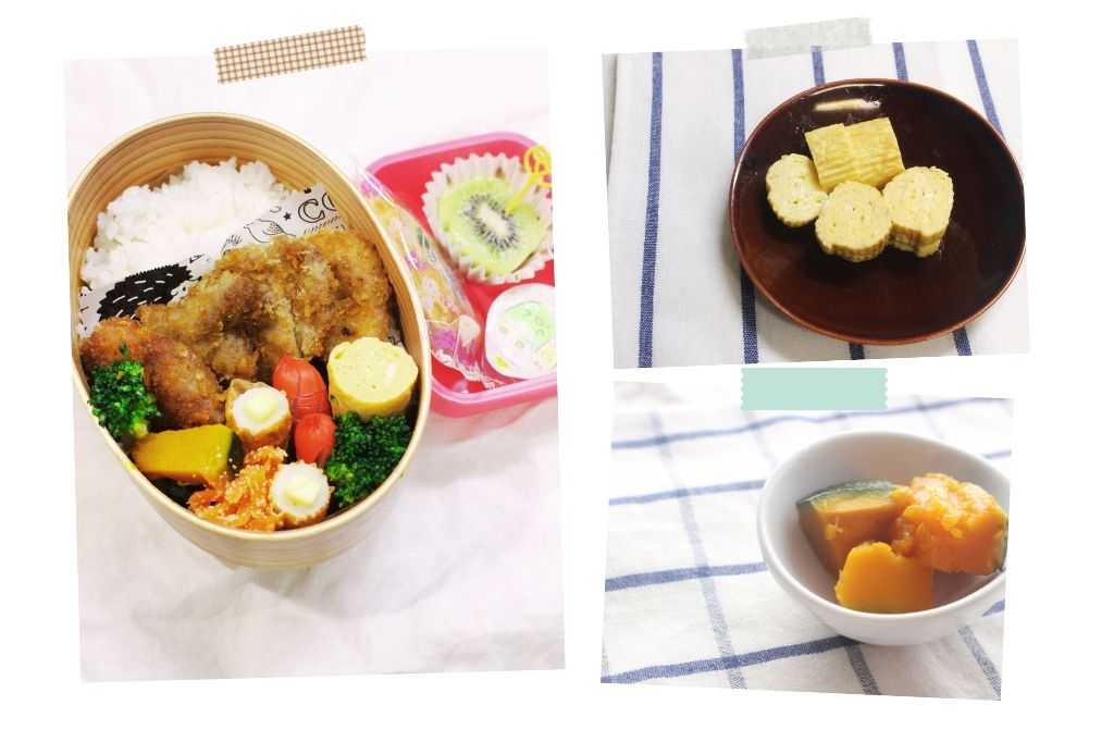 柔らかいヒレ肉をカラッと揚げたヒレカツをメインにした、ボリュームたっぷりのお弁当。副菜にはかぼちゃの煮物や卵焼き、にんじんたらこなど家庭的な味わいのおかずを詰め込みました。さらにフルーツやデザートも添えて、最後まで飽きずに楽しめる献立です。 ヒレカツ かぼちゃ煮物 にんじんたらこ 献立一覧 (メイン)ヒレカツ(ソースカツ) (副菜①)かぼちゃ煮物 (副菜②)にんじんたらこ (副菜③)卵焼き チーズちくわ ウインナー ブロッコリー キウイ ゼリー 平家パイ レシピ 📢タブをタップするごとにメ ...