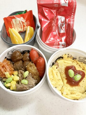 普通のお弁当箱に入れると「ごはん固いーー!」と言って残す事もあるので、無理やりでも温かいお弁当箱に入れた方が良いなと思いました。