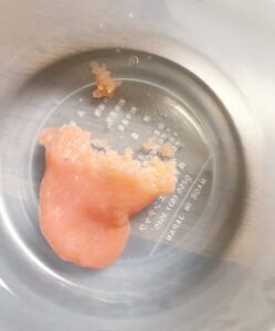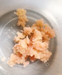 - たらこをほぐす(皮はできるだけ取って中身だけを使います。できるだけ...)