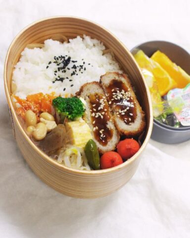 市販のメンチカツをメインに、副菜をたっぷり詰めて彩りと栄養を整えたお弁当。卵焼き・にんじんたらこ・五目豆・もやしナムル・ピーマンソテーなど、味も食感もバランスよく組み合わせました。ウインナーやブロッコリーで食べやすさをプラスし、オレンジ・ゼリー・パイの実で甘さも添えた、満足感のある一箱です (市販)メンチカツ 卵焼き にんじんたらこ 献立一覧 (メイン)(市販)メンチカツ (副菜①)卵焼き (副菜②)にんじんたらこ (副菜③)五目豆 (副菜④)もやしナムル (副菜⑤)ピーマンソテー ウインナー ブロッコリ ...