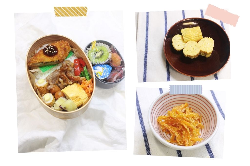 甘辛味がしっかり染みた「にんじん肉巻き」をメインにした、彩り豊かなお弁当献立です。副菜には、たらこマヨ卵焼き・ひじき煮物・かぼちゃ煮物など、和風の味わいを詰め込みました。栄養バランスも良く、見た目も華やかなので、食べる側も作る側も満足できる一品です。 にんじん肉巻き たらこ卵焼き ひじき煮物 献立一覧 (メイン)にんじん肉巻き (副菜①)たらこ卵焼き (副菜②)ひじき煮物 (副菜③)かぼちゃ煮物 ウインナー ブロッコリー スナップエンドウごま和え トマト みかん 源氏パイ レシピ 📢タブを ...