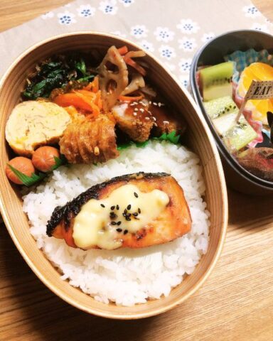 今日は鮭マヨをメインにしたお弁当の献立例です。