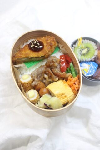 オールスパイスの香りが食欲をそそる、豚肉スパイス焼をメインにしたお弁当。副菜にはにんじんツナ煮やちくわ磯部揚げ、ハムたまごなど、定番と変化球をバランスよく組み合わせました。市販のミートボールやウインナーも活用しつつ、きゅうりの浅漬けや枝豆でさっぱり感もプラス。ぶどうやゼリー、チョコブラウニーで“お楽しみ”も忘れない、香りと彩りのバランス弁当です。 豚肉スパイス焼 にんじんツナ煮 ちくわ磯部揚げ 献立一覧 (メイン)豚肉スパイス焼 (サイド①)にんじんツナ煮 (サイド②)ちくわ磯部揚げ (サイド③)ハムたま ...