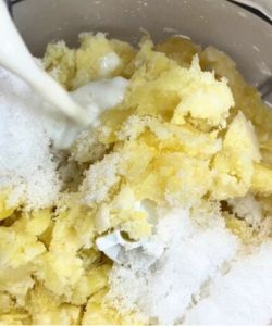- 火が通ったさつまいもをフードプロセッサーに入れ【A】を入れて滑らかになるまで混ぜる