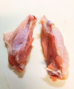 - 手羽先を関節で切り分けて、手羽中ハーフにする