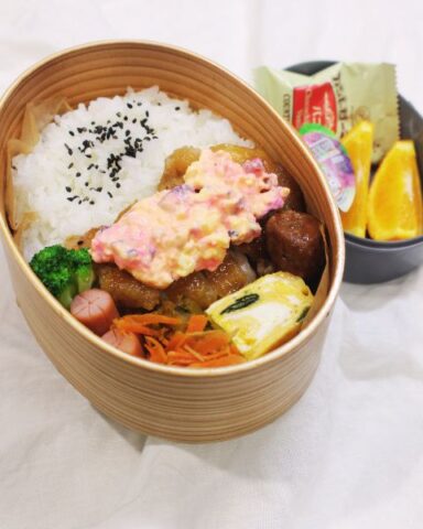 定番人気のお弁当といえばやっぱりのり弁。当たり前のおかずも入れ方や組み合わせで毎回少しずつ違った楽しみ方ができます。今回は市販の白身魚フライをメインに、ちくわ磯部揚げや卵焼き、野菜の副菜を合わせて彩り豊かに仕上げました。フルーツやデザートも加えて、ボリューム満点の一食です。 (市販)白身魚フライ ちくわ磯部揚げ にんじんマヨ 献立一覧 (メイン)(市販)白身魚フライ (副菜①)ちくわ磯部揚げ (副菜②)にんじんマヨ (副菜③)ピーマンとさつまあげのきんぴら (副菜④)卵焼き ウインナー ブロッコリー トマ ...