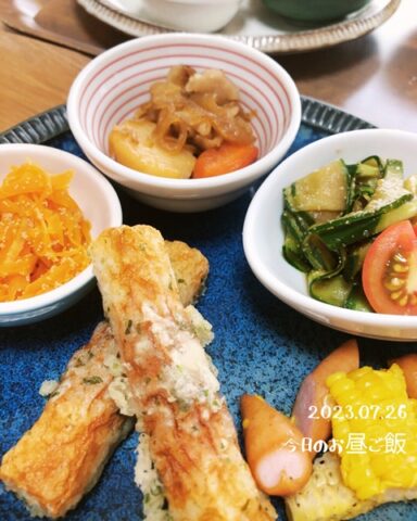 前日の残りをそのまま活用。小皿に分けるだけで、立派なワンプレート昼ごはんになります。