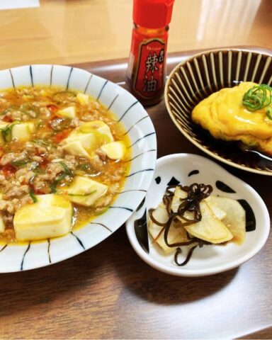 麻婆豆腐や中華風おかずなど、少し味濃いめでご飯が進むワンプレート。