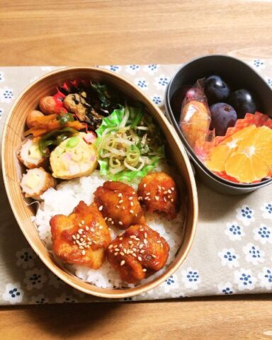 今日は前日の唐揚げをリメイクした「ヤンニョムチキン弁当」。